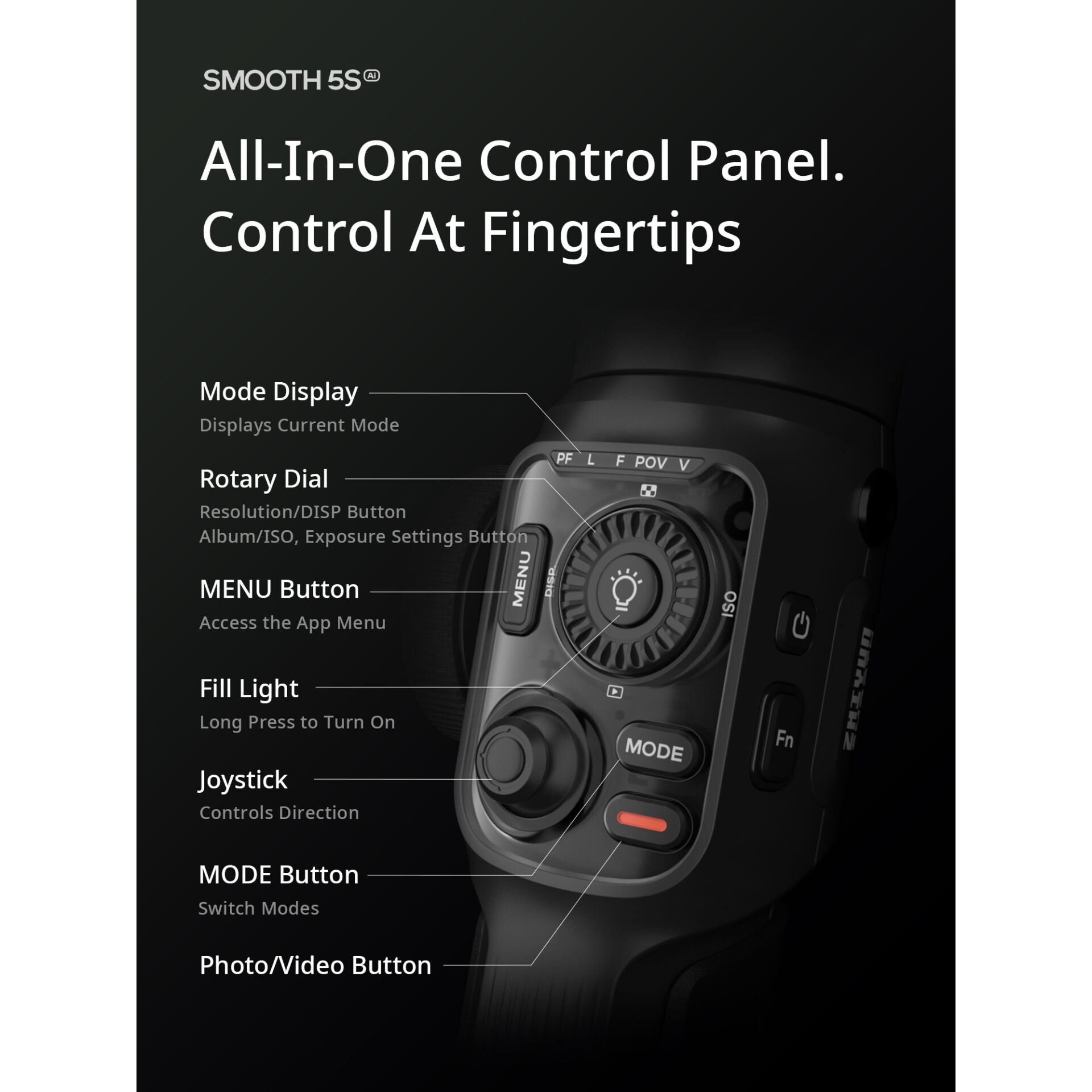 Ontdek de Zhiyun Smooth 5S AI Combo, de ultieme smartphone gimbal die creativiteit en stabiliteit combineert voor elke videomaker. Deze 3-assige handheld gimbal biedt ongeëvenaarde stabiliteit, zodat je altijd moeiteloos vloeiende video’s kunt vastleggen, of je nu loopt, rent of draait.