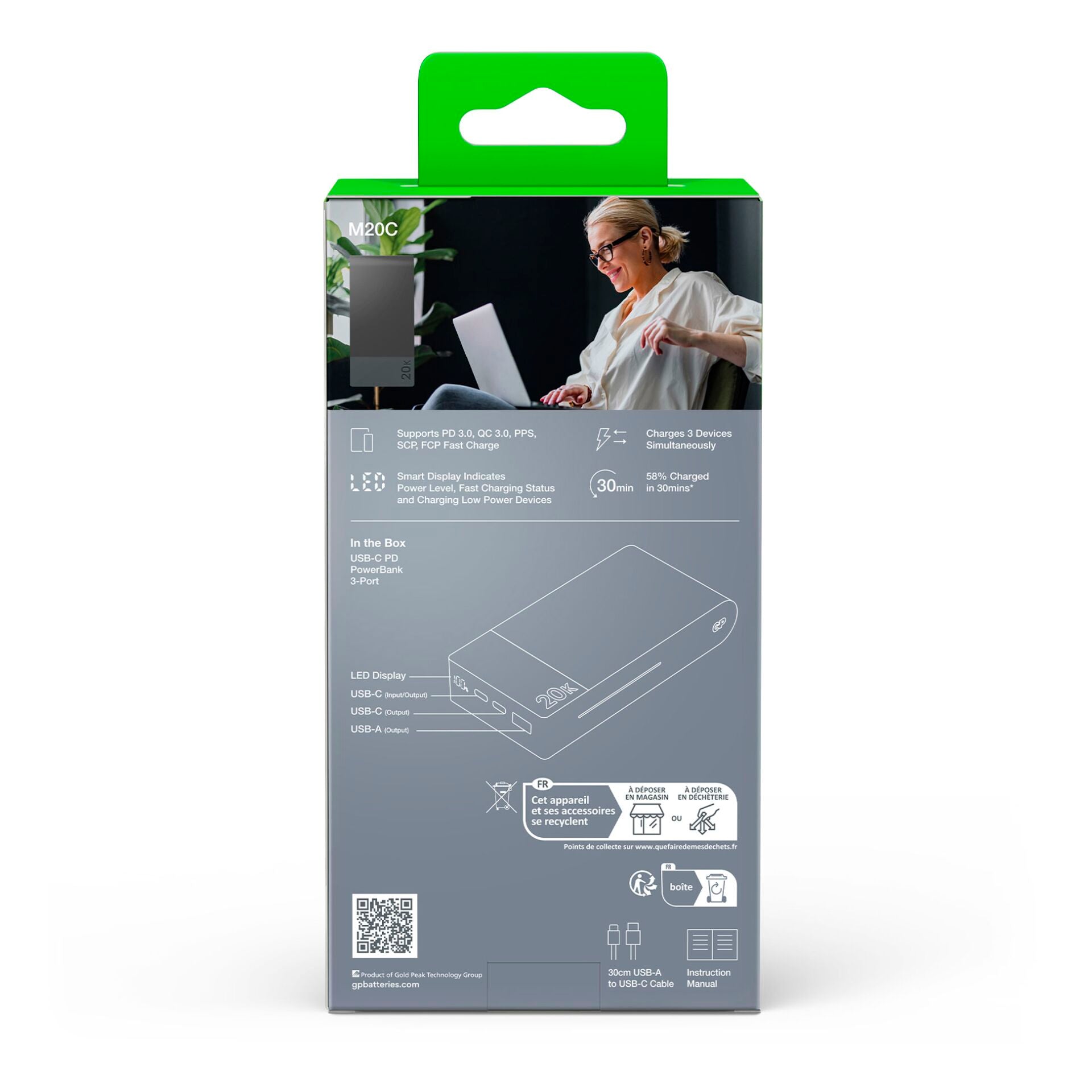 Of u nu op reis bent, op het werk of gewoon thuis, de GP PowerBank M2+ 20C zorgt ervoor dat u altijd verbonden blijft. Vergeet de stress van een lege batterij en geniet van de vrijheid die deze powerbank biedt.