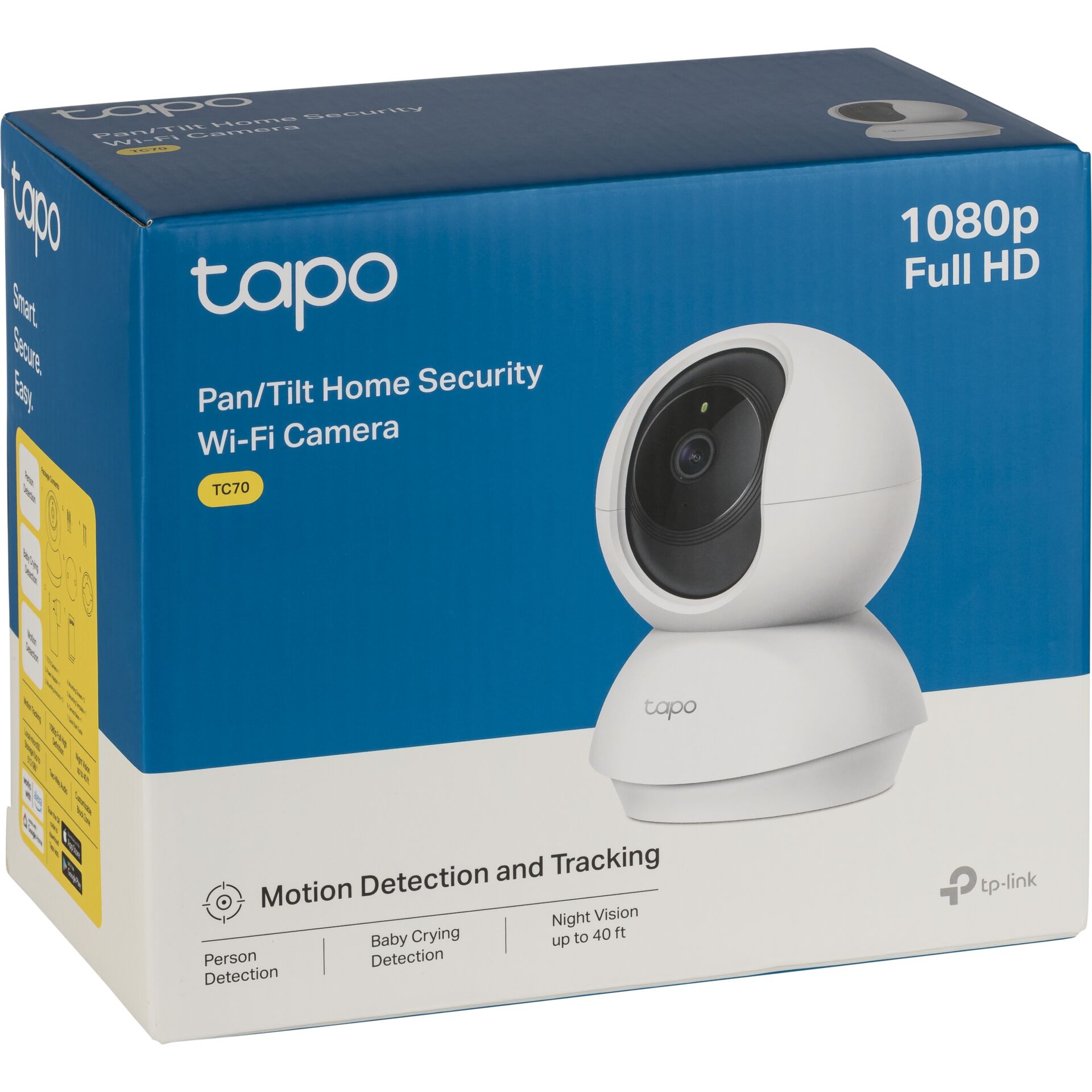 Ervaar gemoedsrust met de Tapo TC70 Pan/Tilt Home Security Wi-Fi Camera. Deze geavanceerde netwerkbewakingscamera is ontworpen om uw huis veilig te houden, dagelijks en 's nachts.