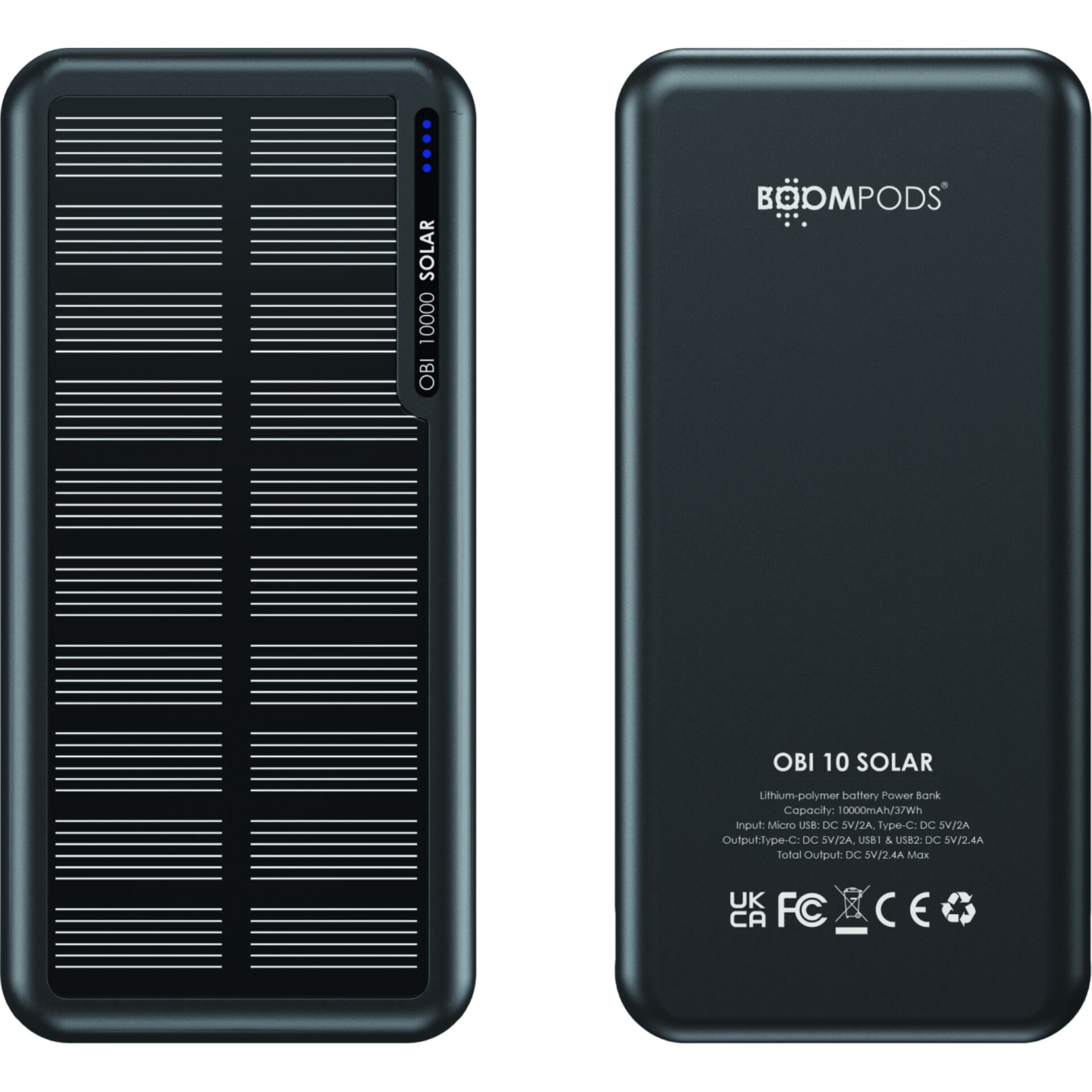 Boompods Obi 10,000mAh Solar Powerbank - Black
