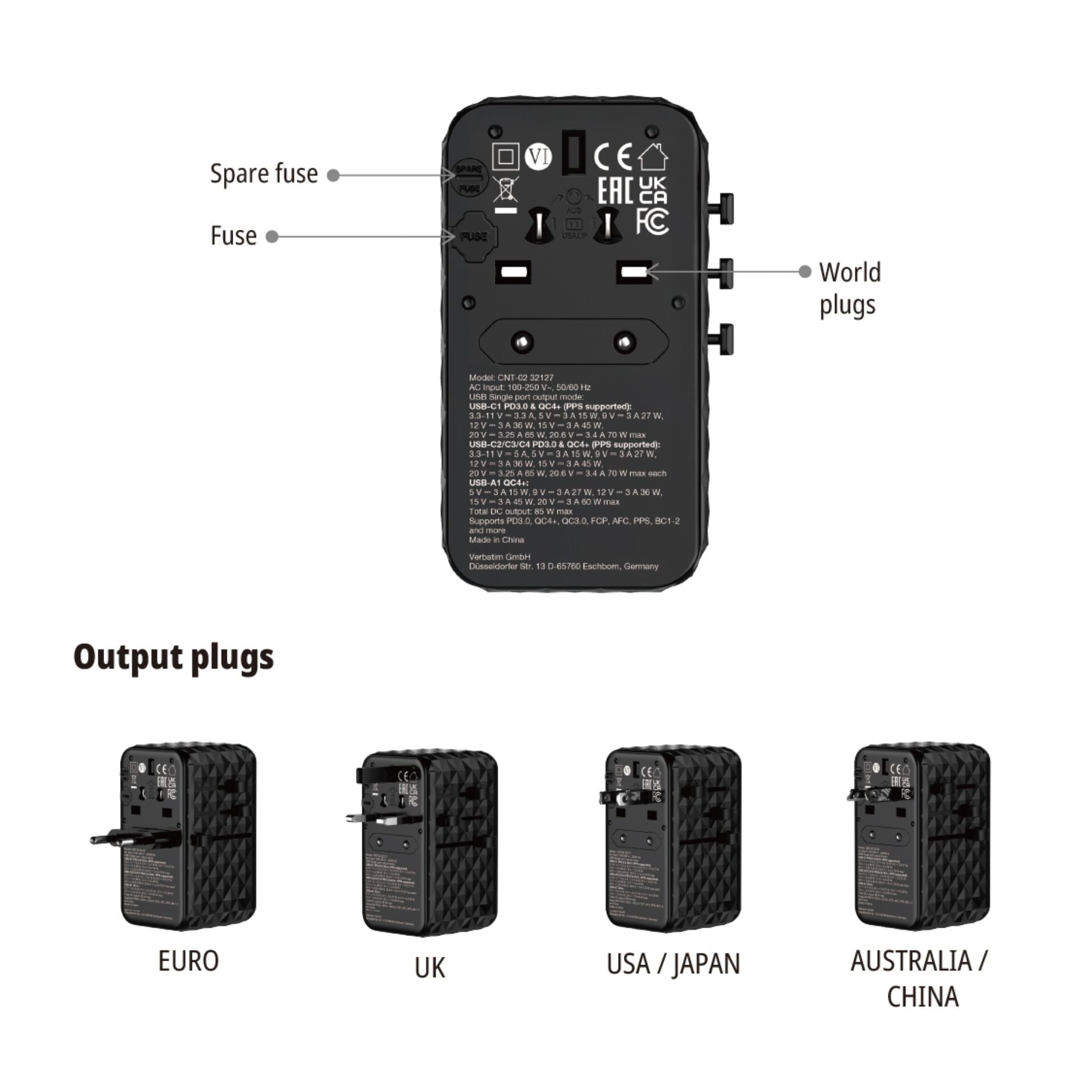 Verbatim Charge´n´Travel Diamond 85W Retr. Cable CNT-02 32127
