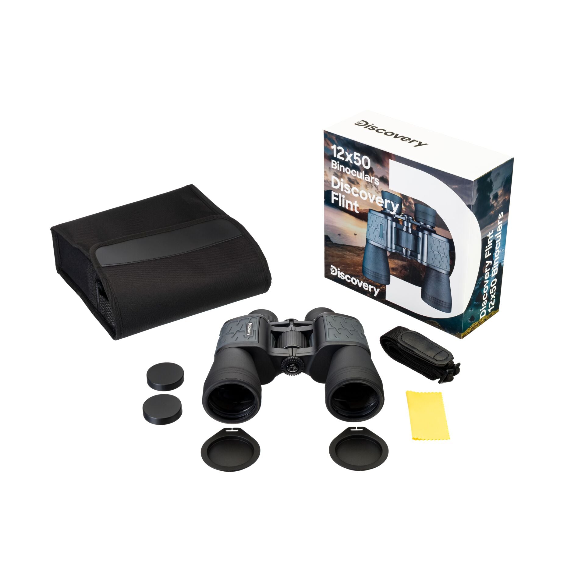 Met een vergroting van 12x en een frontlensdiameter van 50 mm, biedt de Discovery Flint uitzonderlijke helderheid en detail, zelfs op grote afstand. De Porro-prisma constructie zorgt voor een breed gezichtsveld en uitstekende dieptewaarneming.