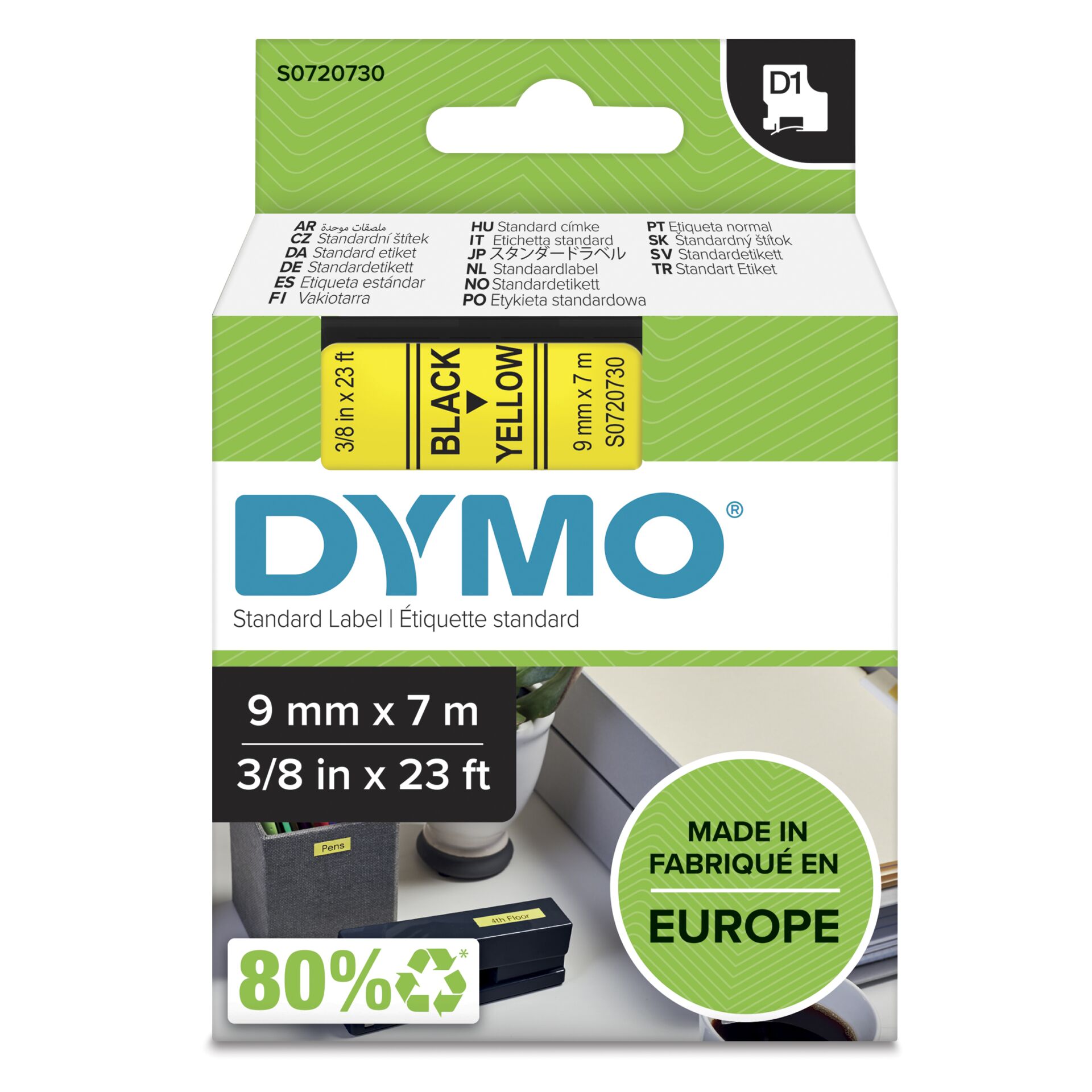 Dymo D1 9mm Black/Yellow labels 40918