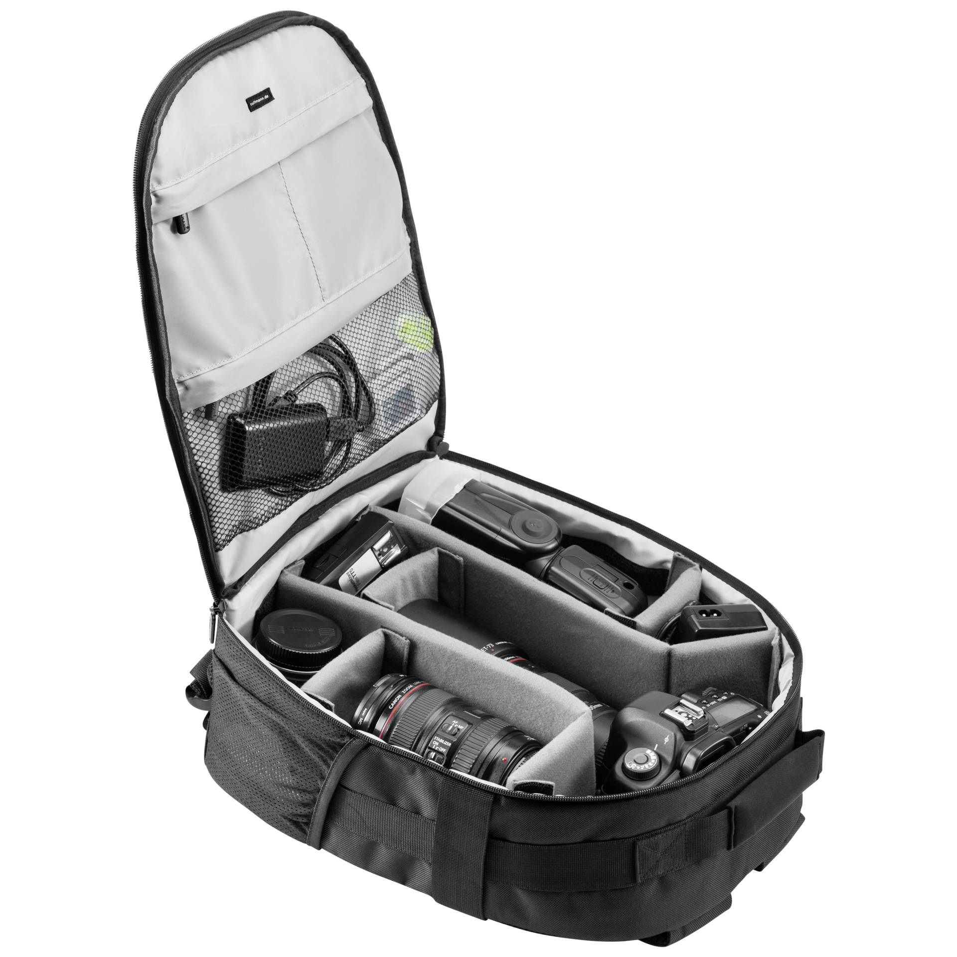 - Ruime interieur: Met een flexibel indelingssysteem biedt deze rugzak voldoende ruimte voor camera’s, lenzen en accessoires.