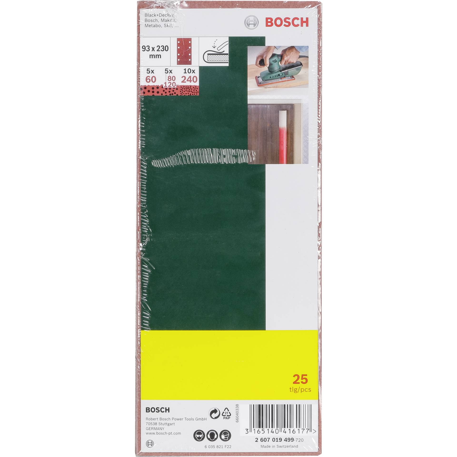Bosch 25 Sanding Pads 93x230 8 holes Grit 60-240