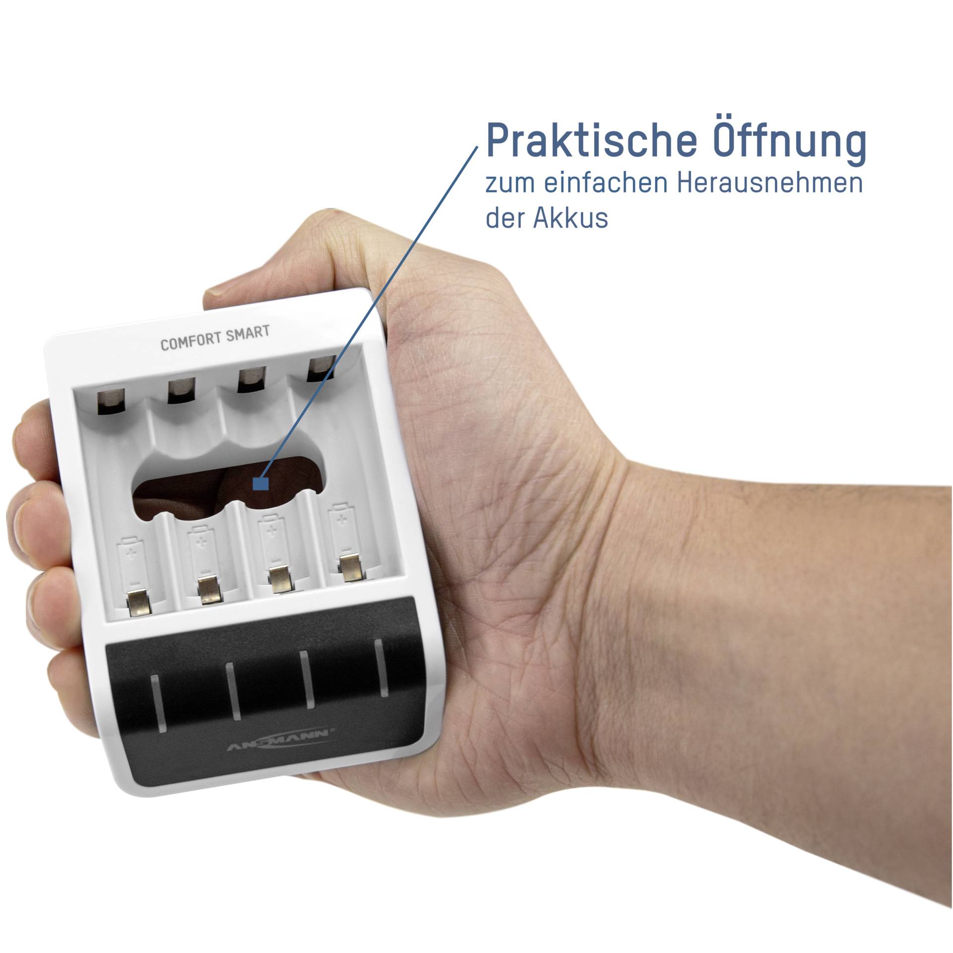 - Intelligente laadtechnologie: De Ansmann Comfort Smart Charger past automatisch de laadstroom aan, waardoor overbelasting en schade aan de batterijen worden voorkomen.