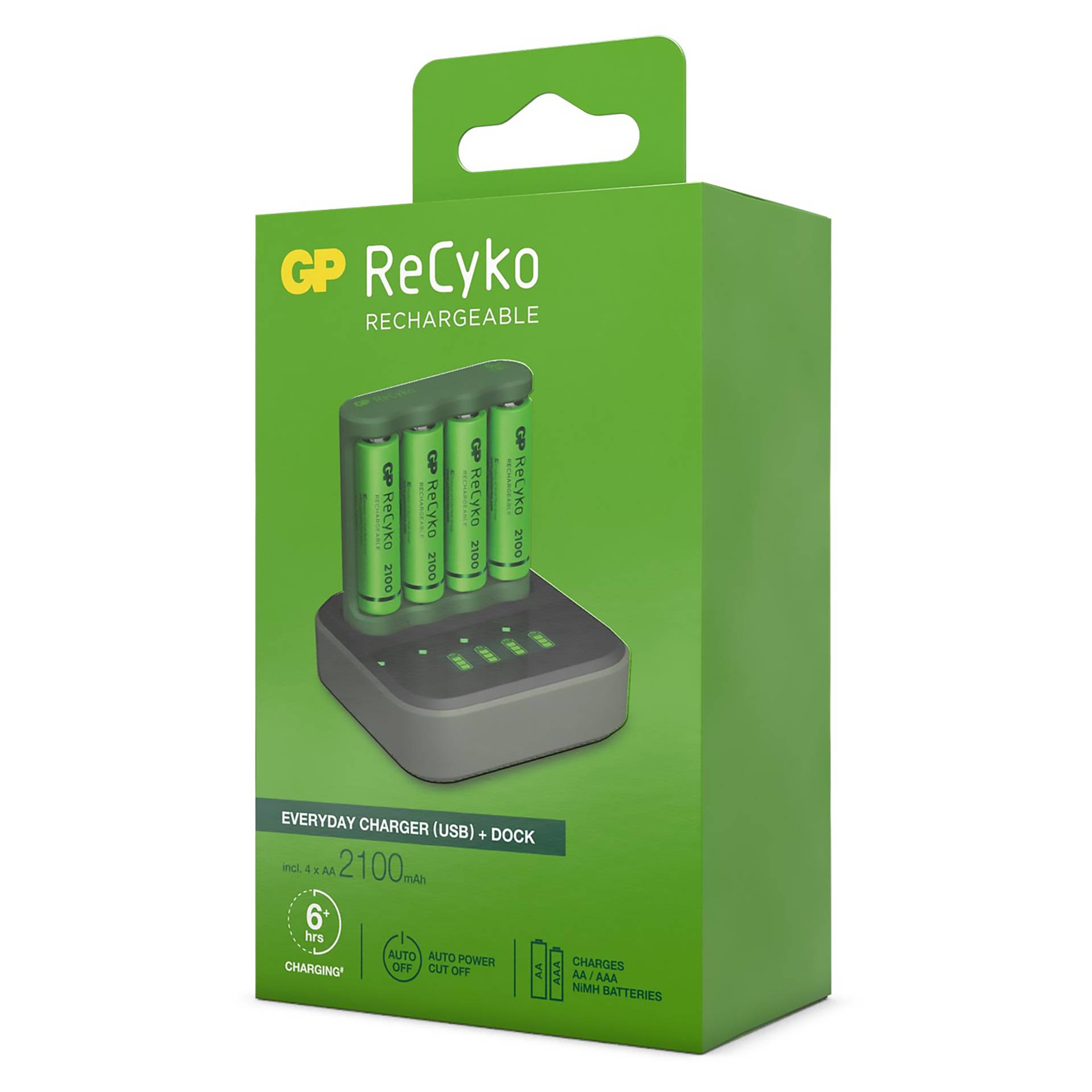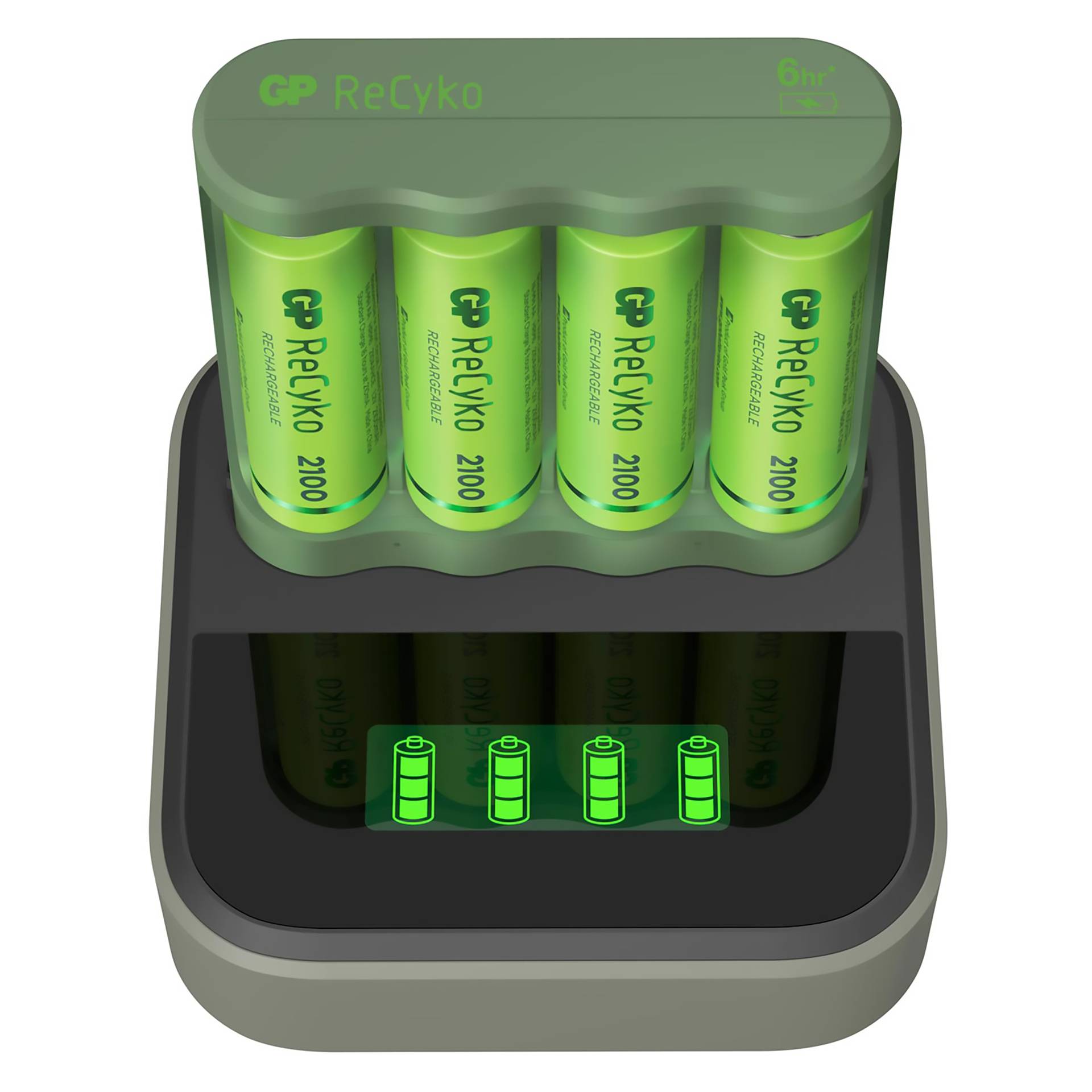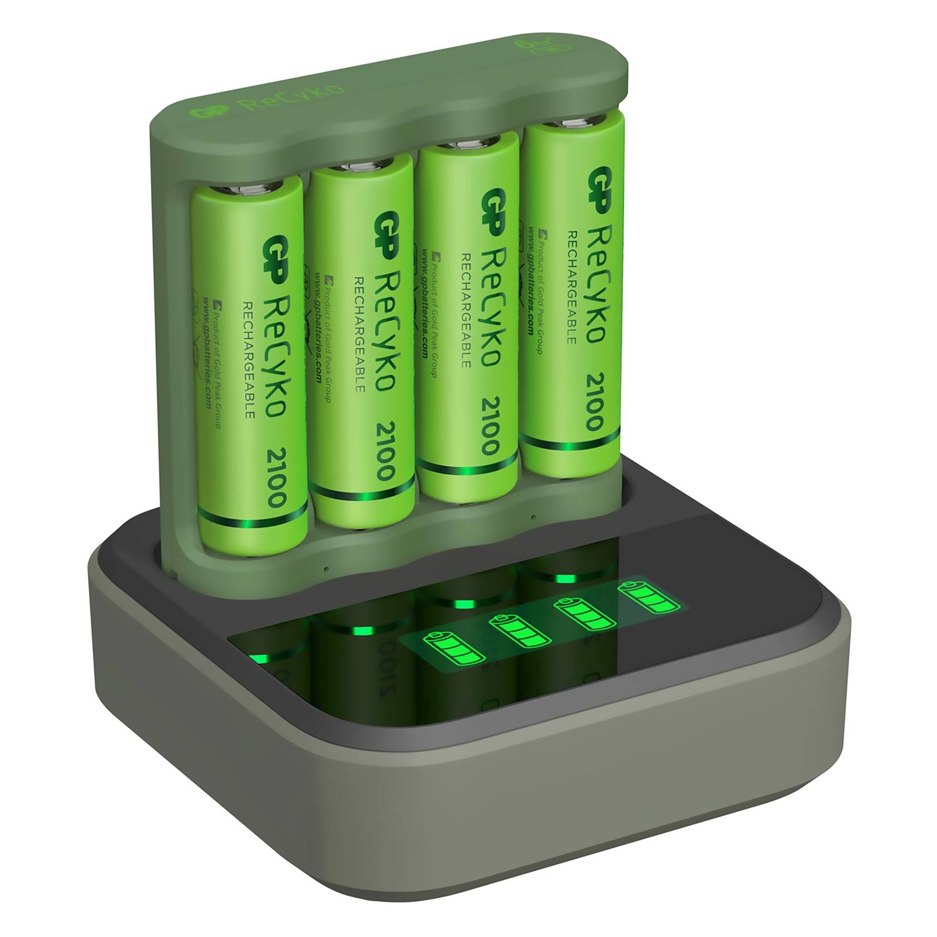 - Energie-efficiëntie: Met geavanceerde technologie zorgt de GP ReCyko ervoor dat uw batterijen snel en efficiënt worden opgeladen, zodat u tijd en energie bespaart.