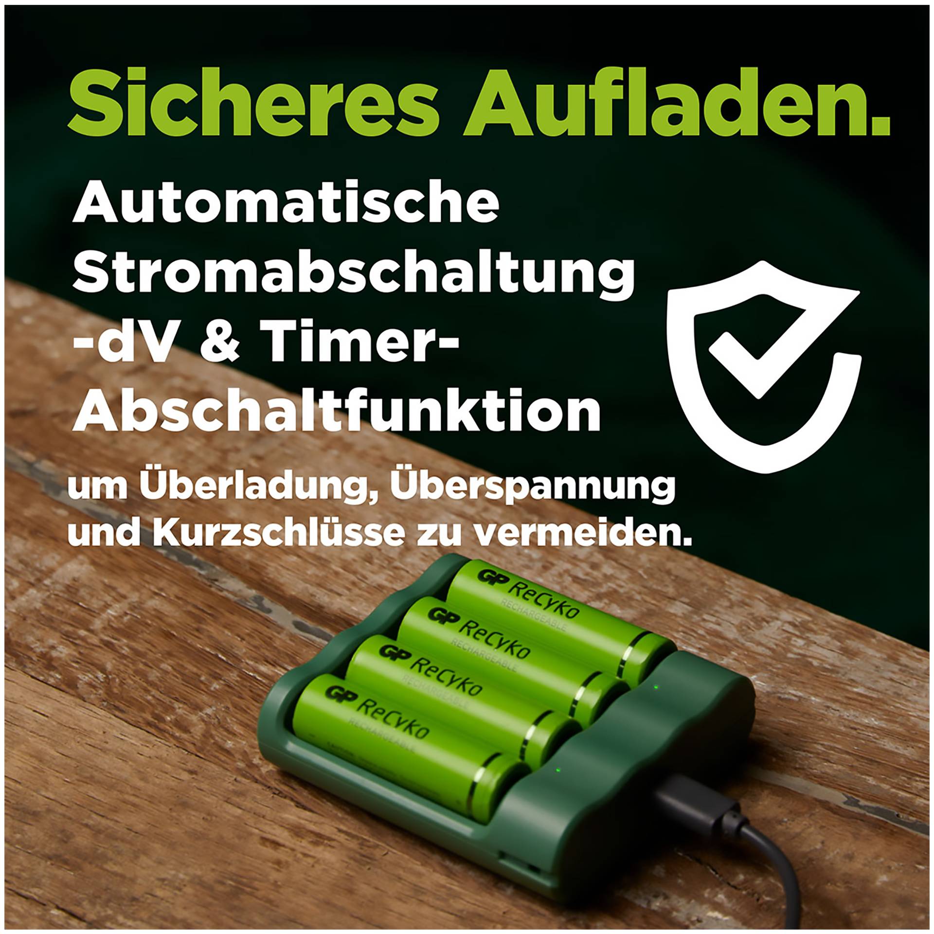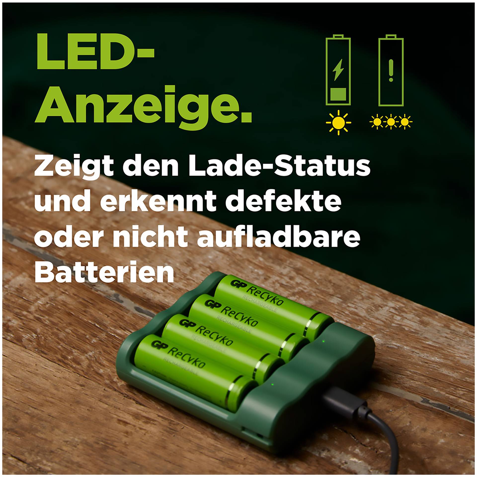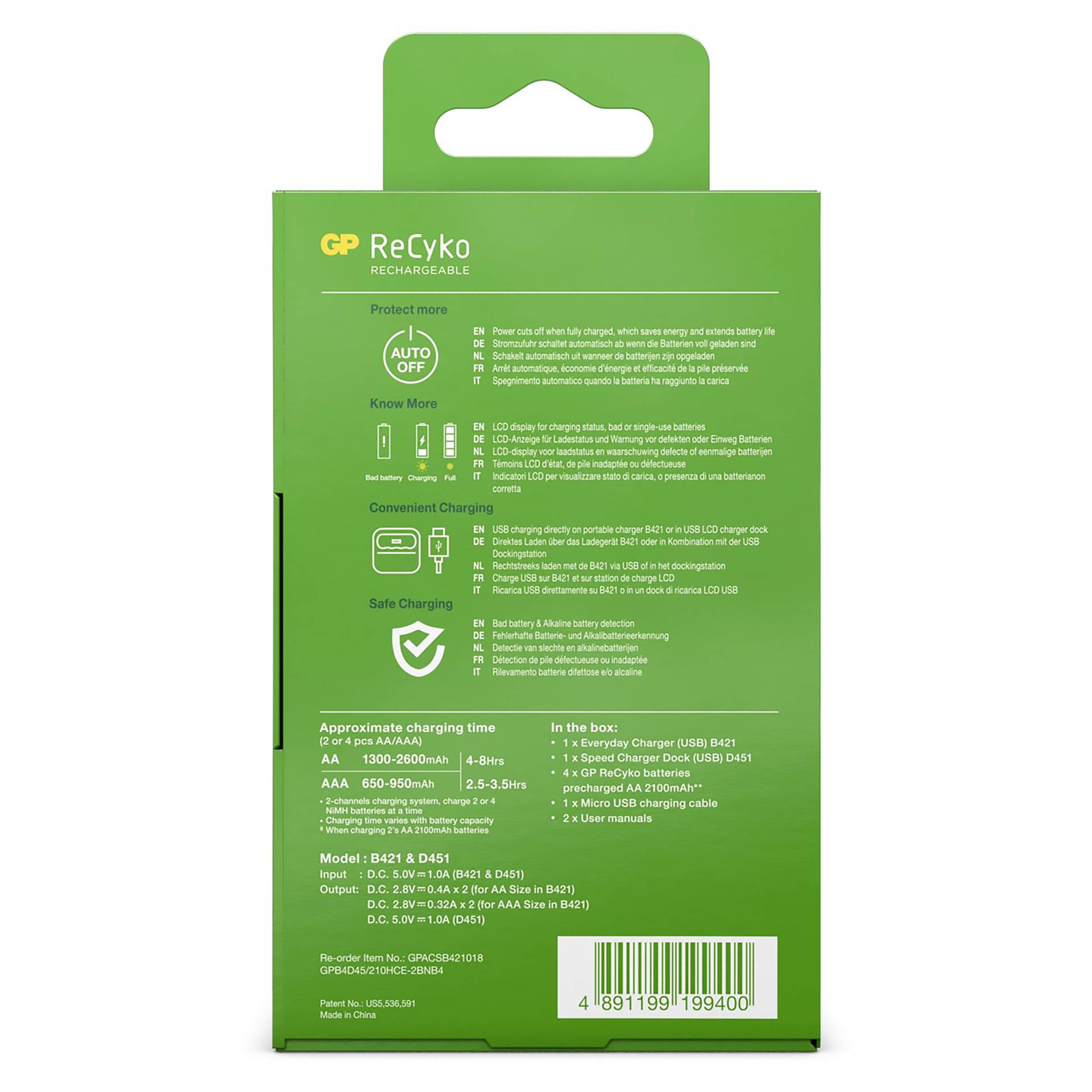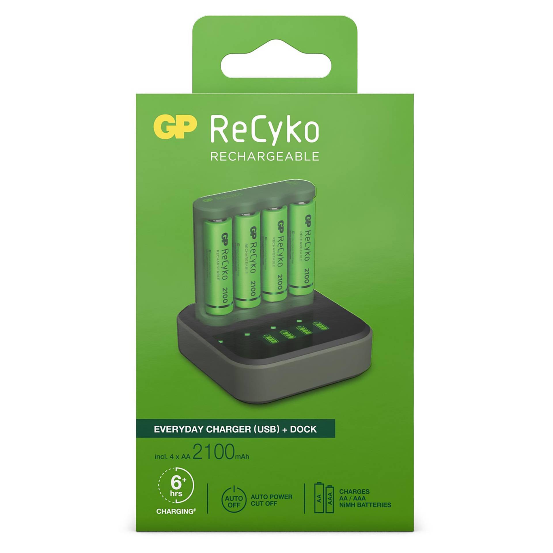 - Energie-efficiëntie: Met geavanceerde technologie zorgt de GP ReCyko ervoor dat uw batterijen snel en efficiënt worden opgeladen, zodat u tijd en energie bespaart.