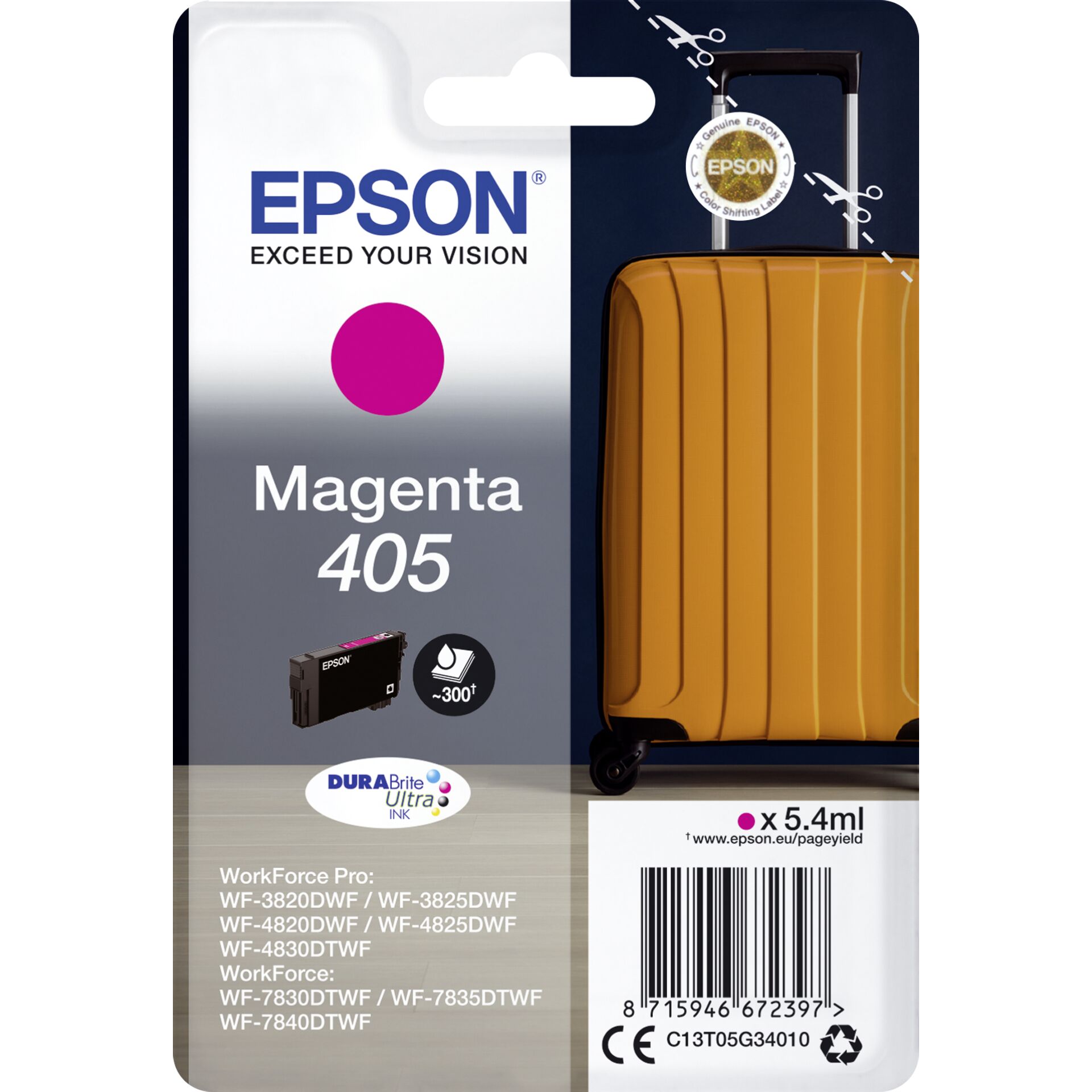 Versterk uw printresultaten met de Epson ink cartridge magenta DURABrite Ultra Ink 405 T 05G3. Deze hoogwaardige inktcartridge is speciaal ontworpen om levendige en duurzame afdrukken te produceren, waardoor elk document en elke afbeelding eruit springt met een schitterende kleurintensiteit.