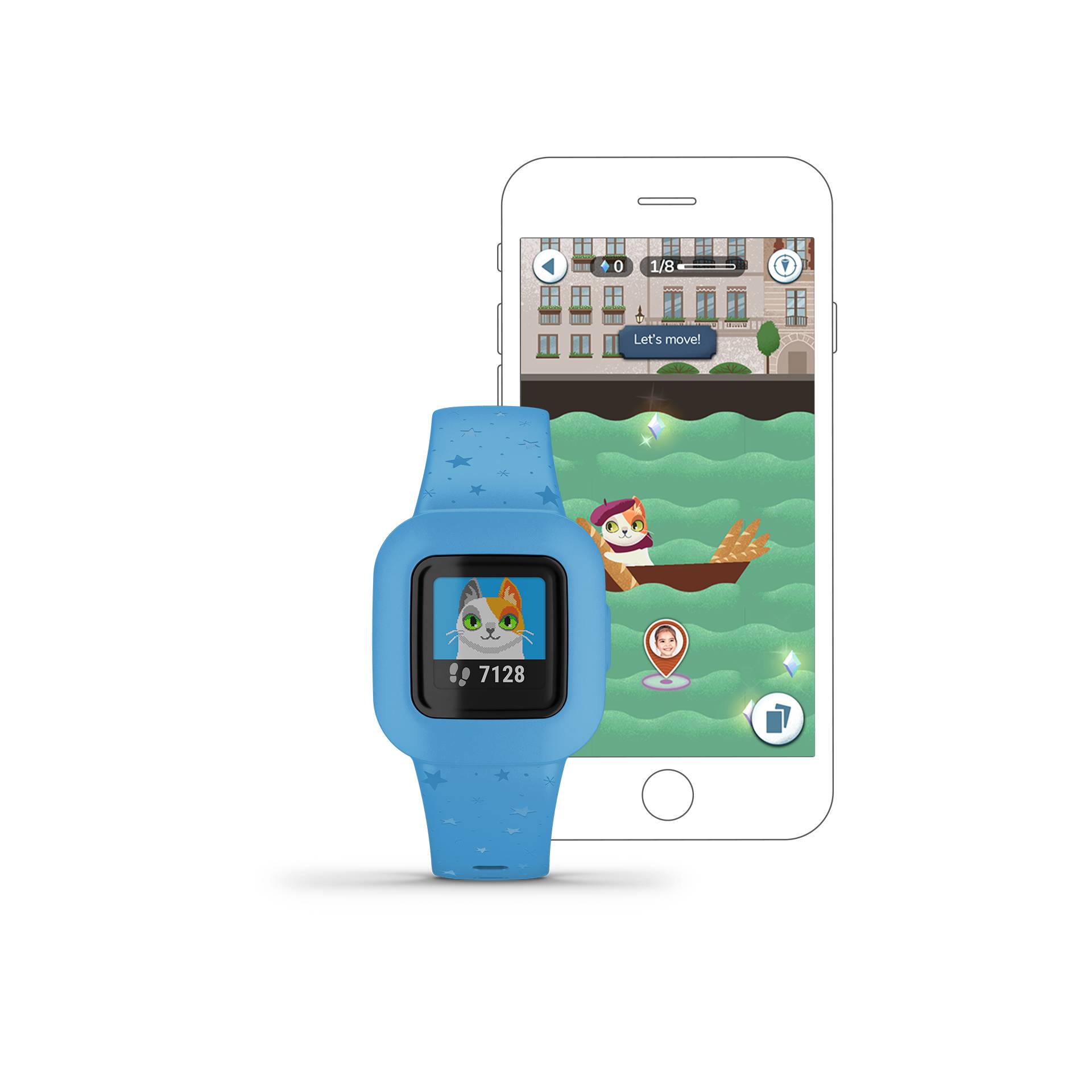 Ontdek de Garmin vivofit jr. 3 Blue Stars, de perfecte activiteitstracker voor kinderen die plezier en gezondheid combineren! Dit kleurrijke en speelse device is ontworpen om de actieve levensstijl van uw kind te stimuleren terwijl het ook hun dagelijkse activiteiten bijhoudt.