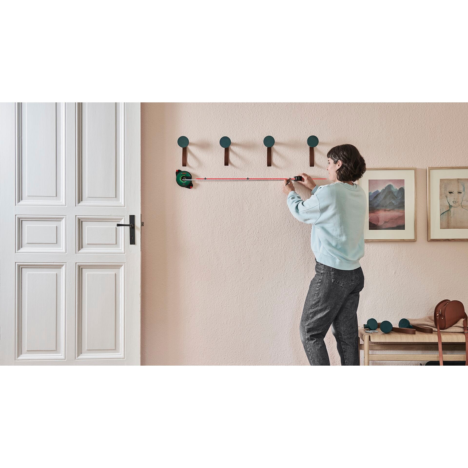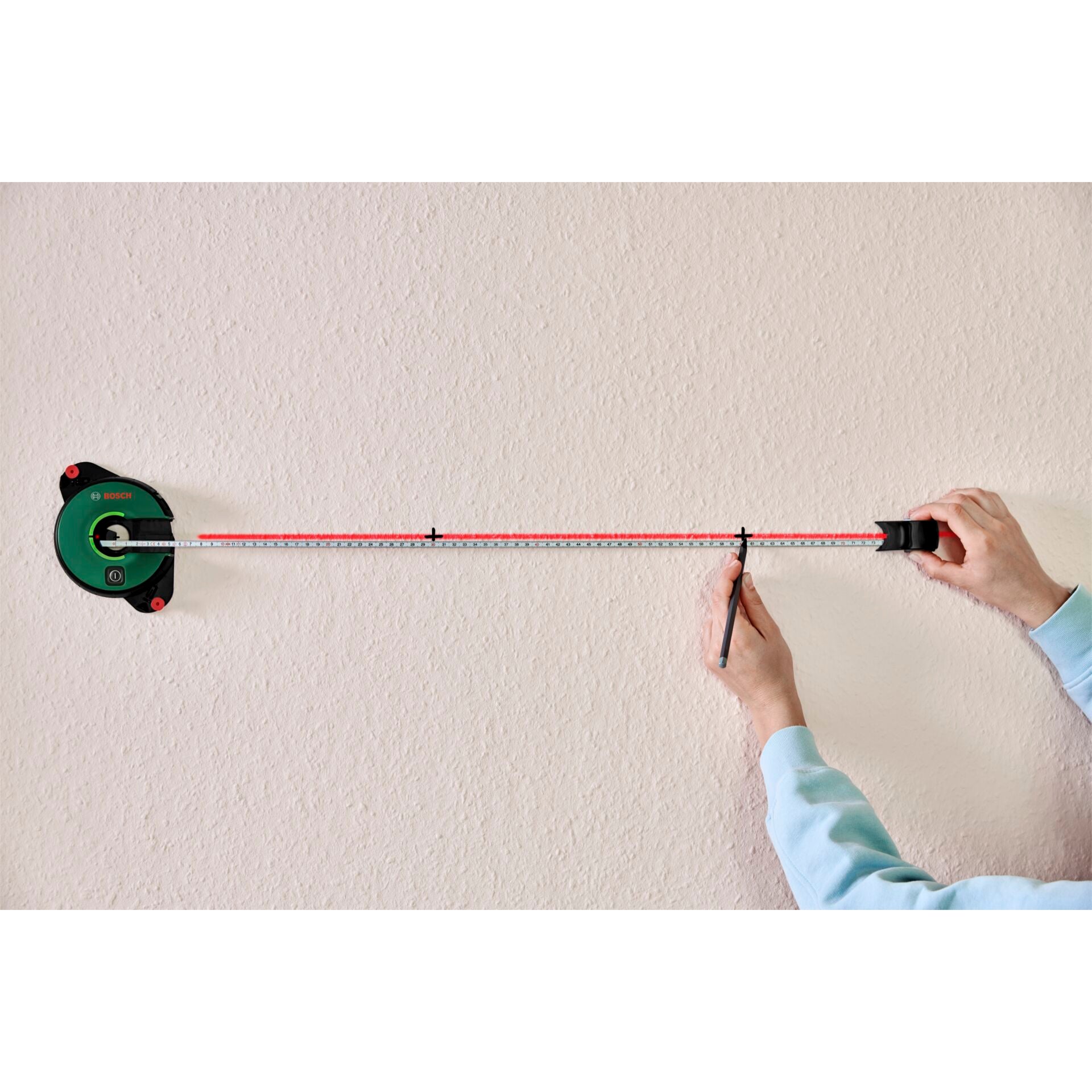 - Meervoudig gebruik: Ideaal voor het uitlijnen van planken, het ophangen van schilderijen of het installeren van verlichting, de Bosch Atino linear laser past zich aan al uw behoeften aan.