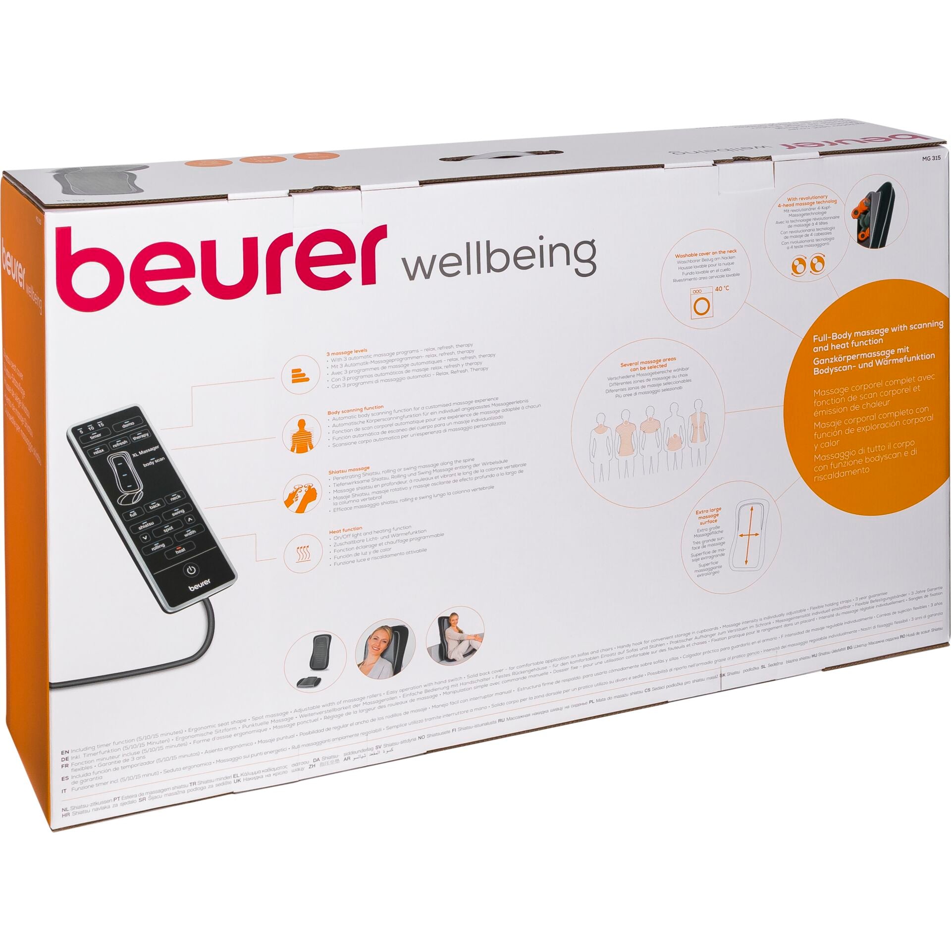 - Hoogwaardige materialen: De Beurer MG 315 is vervaardigd uit duurzame en huidvriendelijke materialen, wat zorgt voor een comfortabele massage-ervaring.