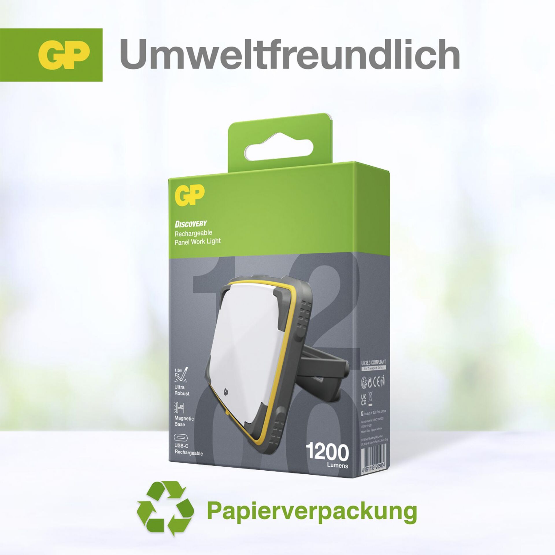 GP Panel Light Working Light 1200 Lumen, IPX7, USB-C, 2x18650