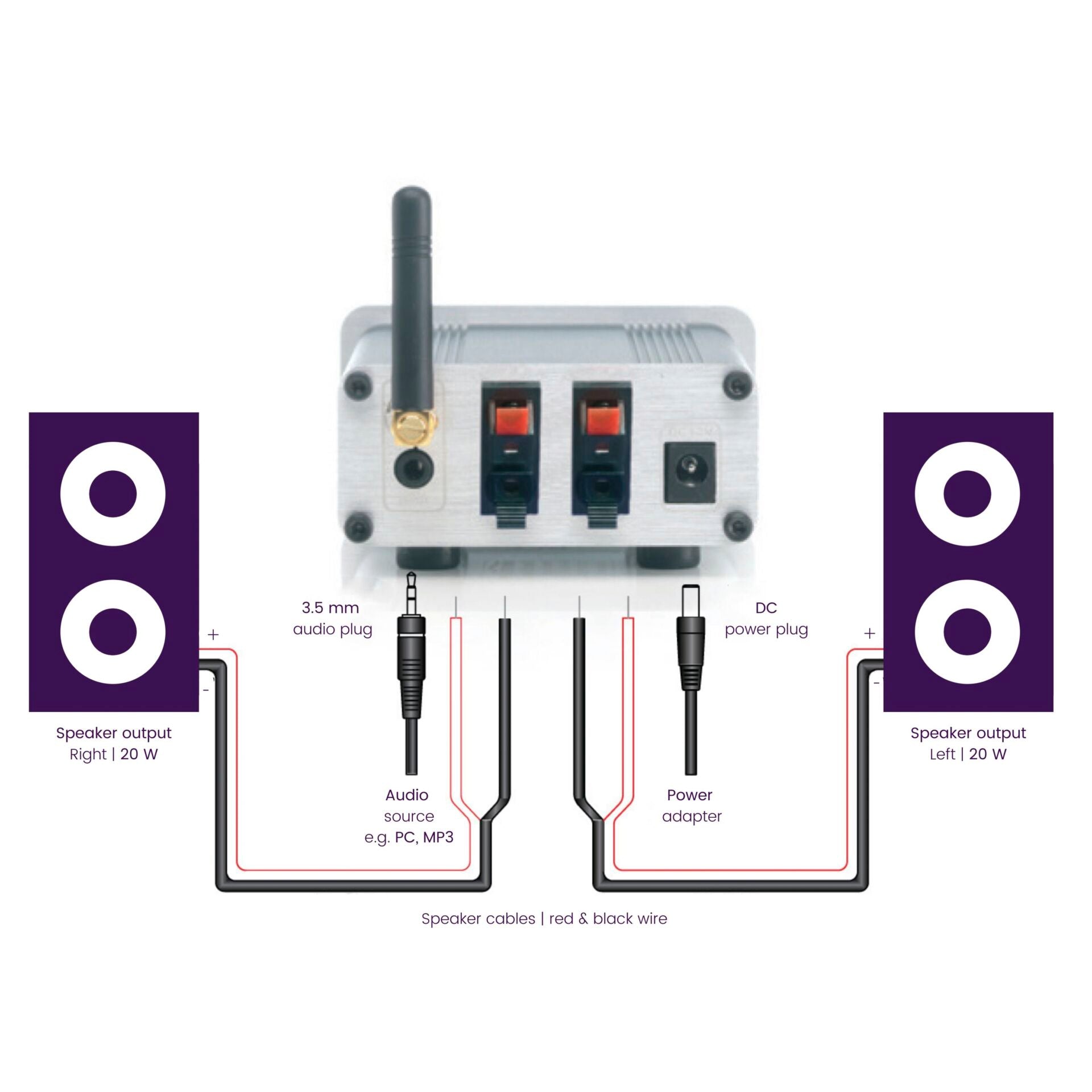 - Compact Ontwerp: Het stijlvolle en compacte ontwerp maakt het makkelijk om de receiver in uw woonkamer of op uw bureau te plaatsen.