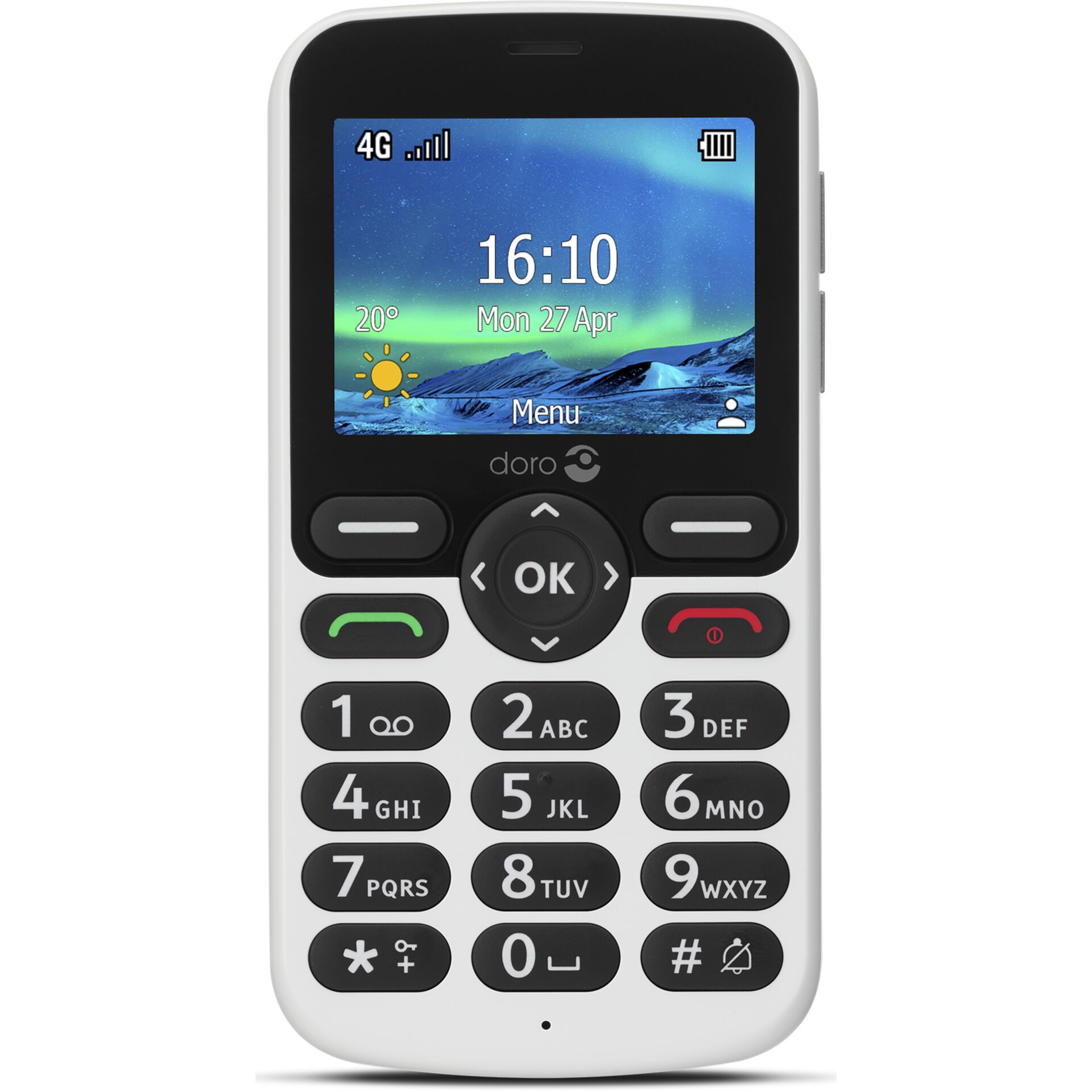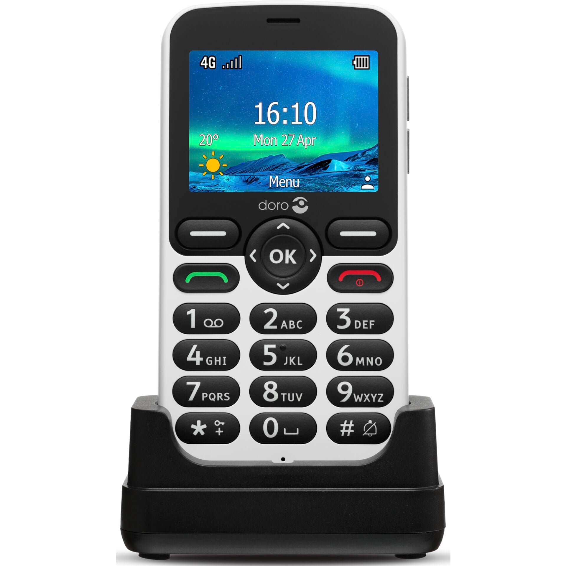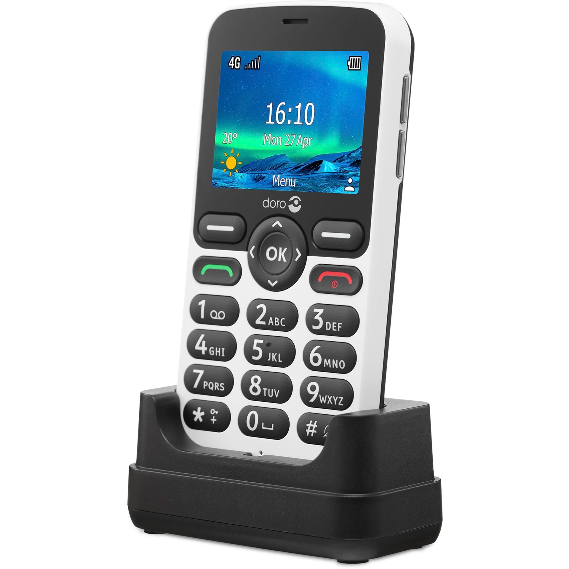 - Compact en stijlvol: Het strakke zwart-witte ontwerp van de Doro 5860 maakt het een moderne en elegante keuze voor elke gelegenheid.