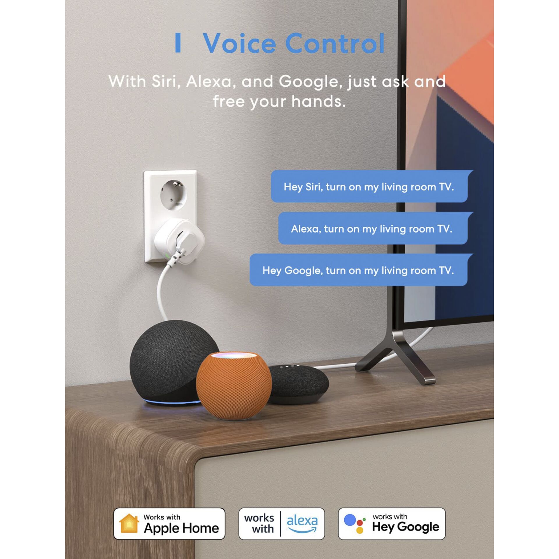 - Stembediening: Compatibel met Amazon Alexa, Google Assistant en SmartThings, zodat u met eenvoudige spraakopdrachten uw apparaten kunt aan- of uitzetten.