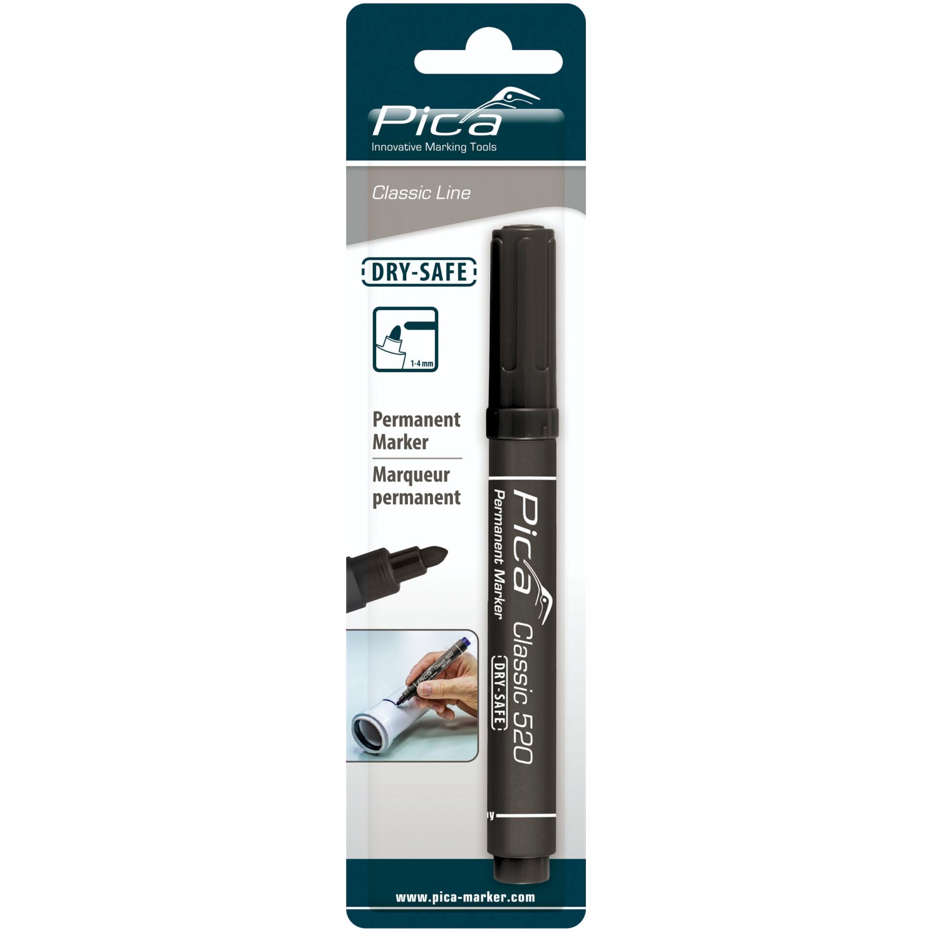 Pica Permanent Marker 1-4mm, Round Tip, black, Retail Pack.