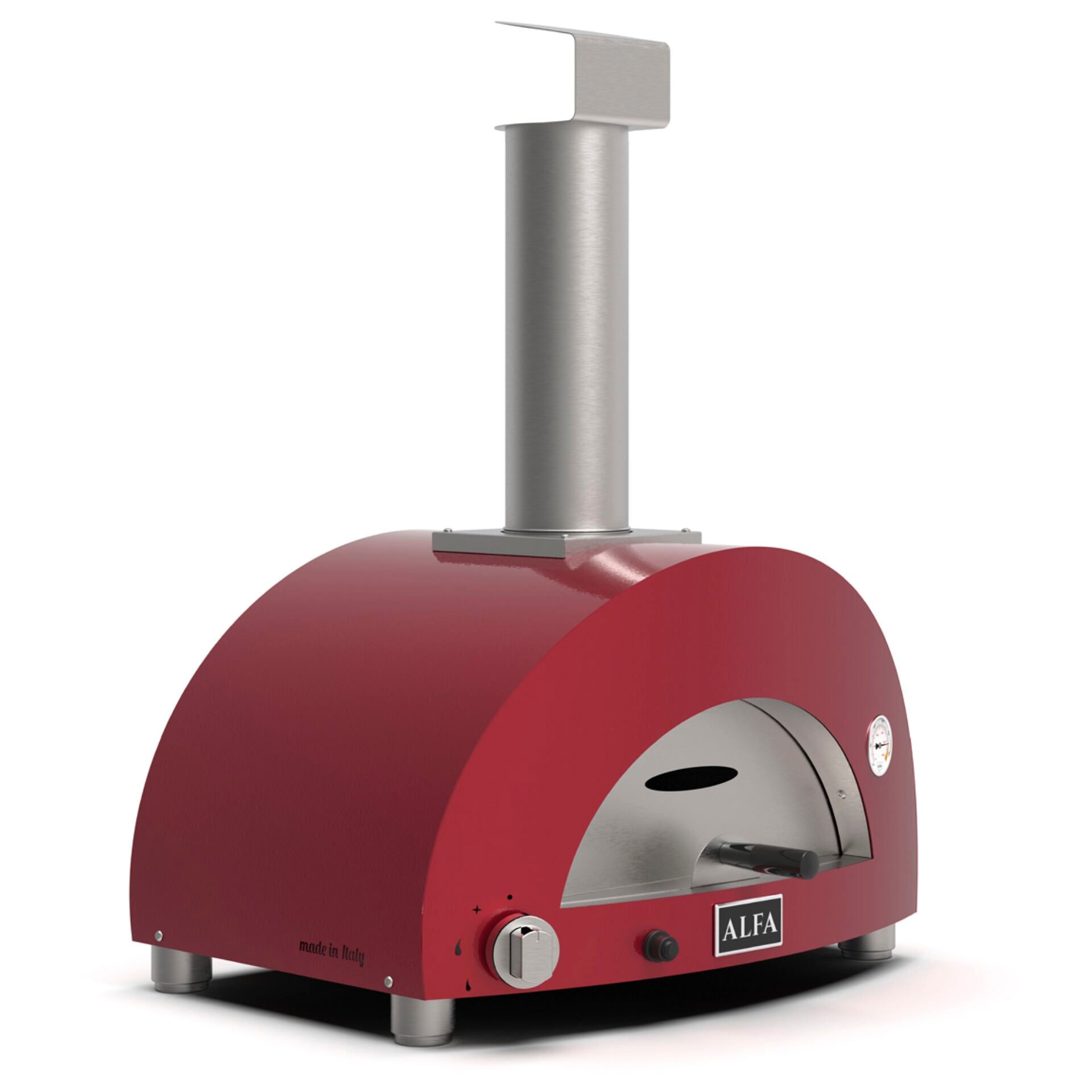 Ontdek de Alfa Forni Moderno 1 Pizza Gas red, de perfecte oplossing voor elke pizzaliefhebber die op zoek is naar een professionele en gebruiksvriendelijke pizzaoven. Deze stijlvolle oven in een opvallende rode kleur combineert functionaliteit met een modern design, waardoor hij een aanwinst is voor elke buitenkeuken.
