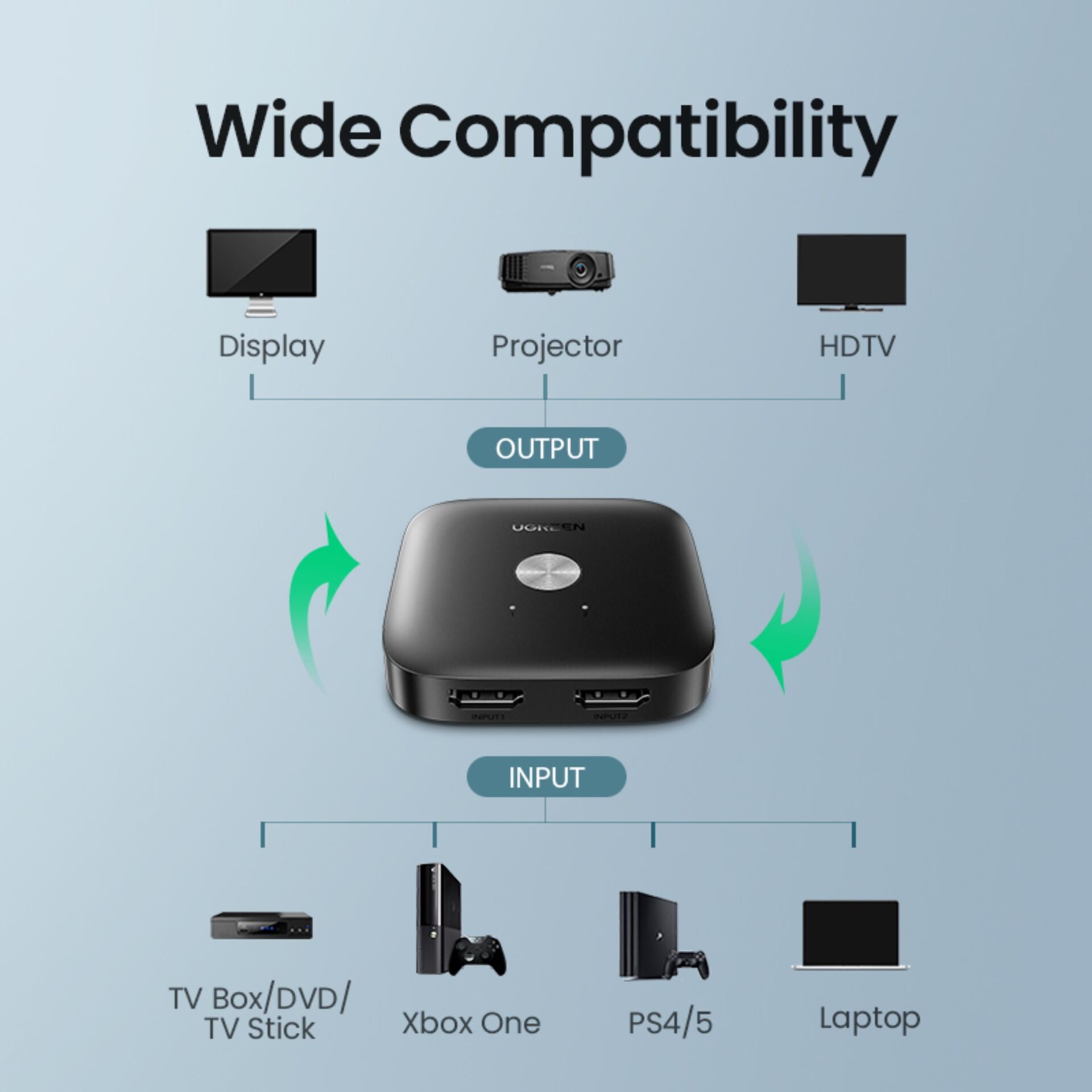 Verander je kijkervaring vandaag nog! Bestel nu de UGREEN HDMI Switcher 2 In 1 Out 4Kx2K en geniet van ongeƫvenaarde beeldkwaliteit en gebruiksgemak!
