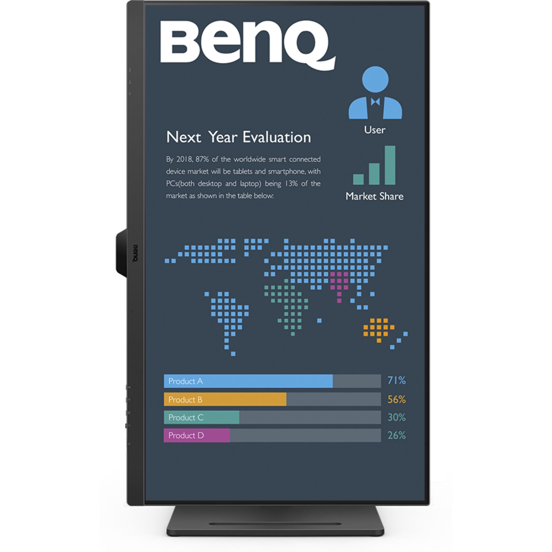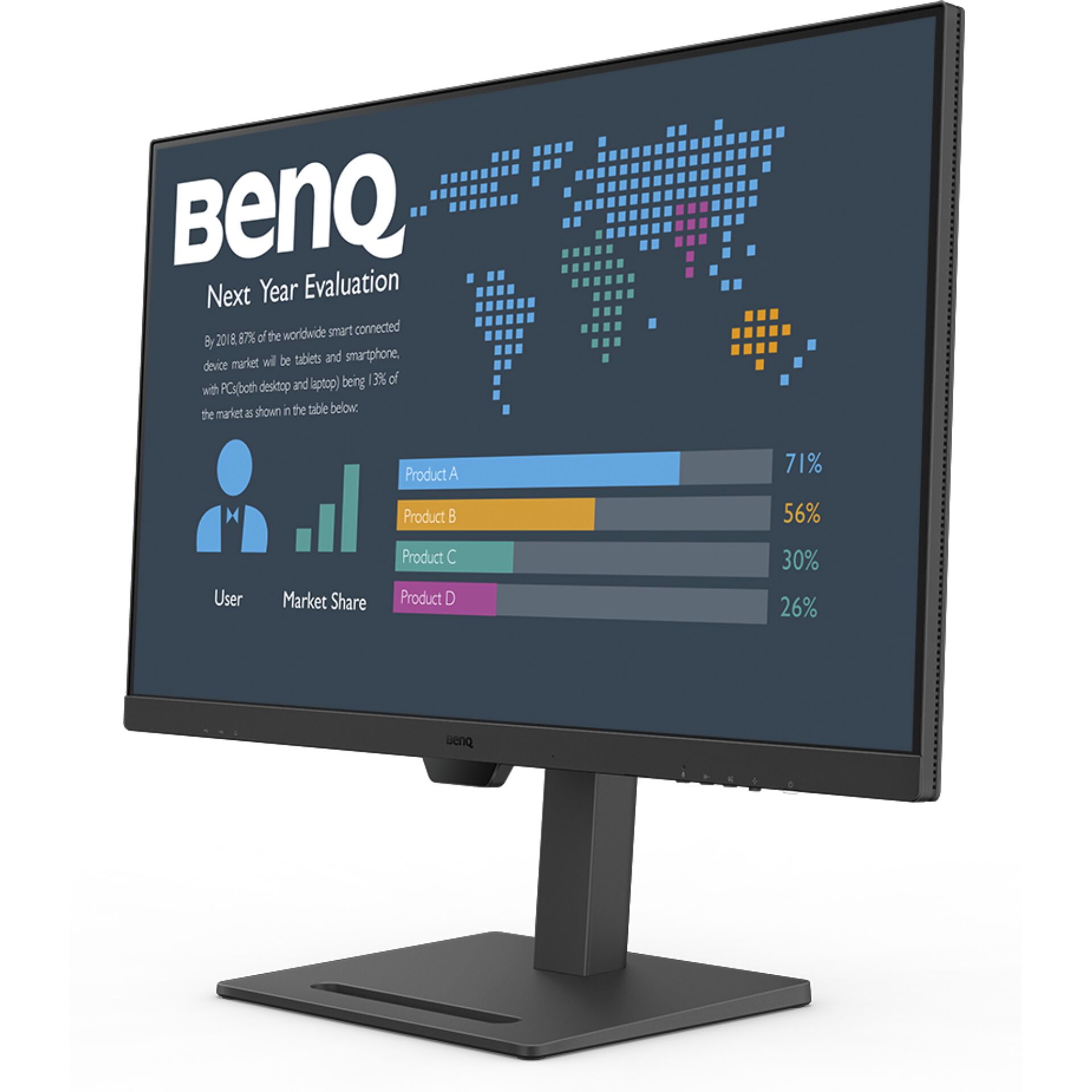 - Ergonomisch ontwerp: Pas de hoogte, kanteling en draaipunt aan voor een comfortabele kijkpositie.
