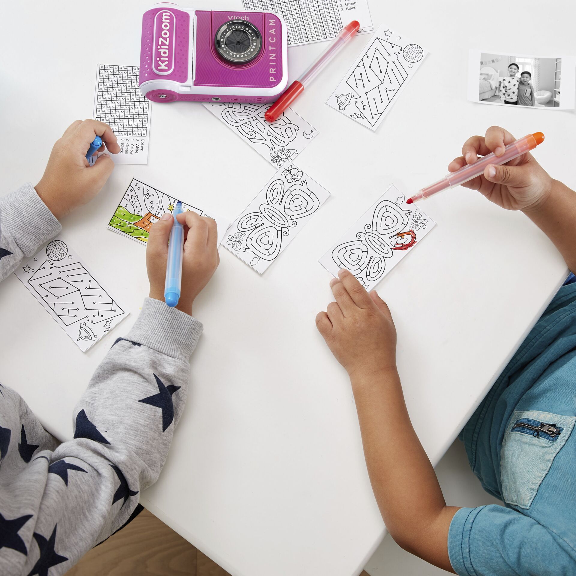 Ontdek de VTech Kidizoom Print Cam pink, de perfecte creatieve metgezel voor jonge fotografen! Dit unieke digitale camera- en printercombo biedt kinderen de mogelijkheid om hun eigen foto's te maken en deze direct af te drukken. Laat de verbeelding van uw kind de vrije loop terwijl ze hun avonturen vastleggen en hun creativiteit uitbreiden.